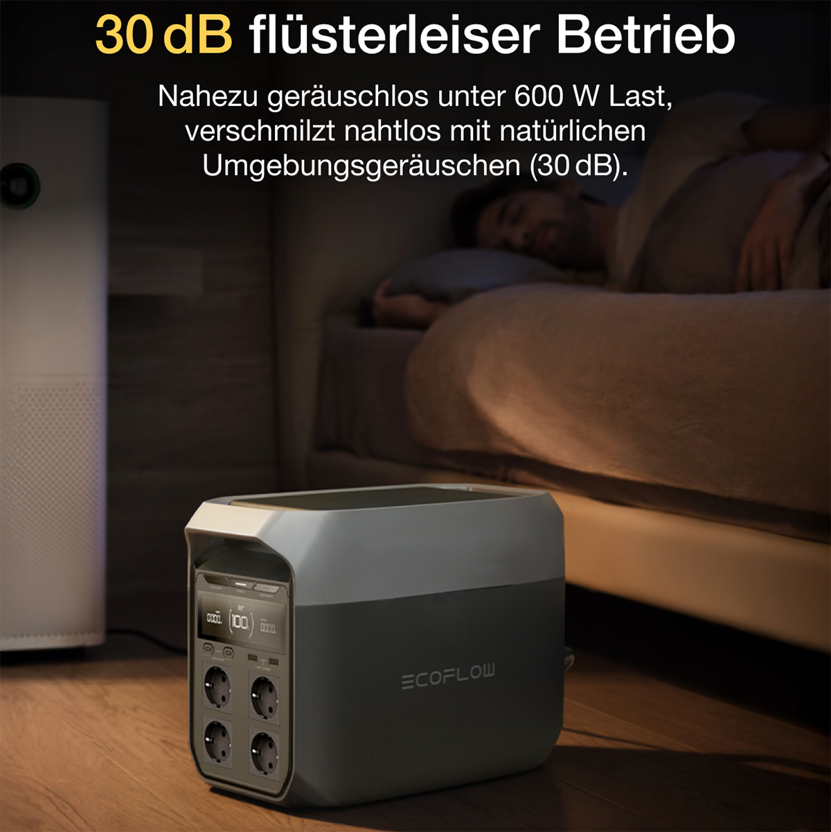 • Mode silence 400 W : la ventilation tombe à 30 dB, pratique la nuit.