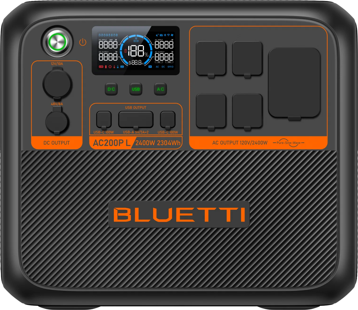 L’AC200MAX ajoute deux ports pour batteries externes B230/B300, un Bluetooth plus avancé et une entrée solaire portée à 900 W. La puissance de sortie reste identique (2 000 W).